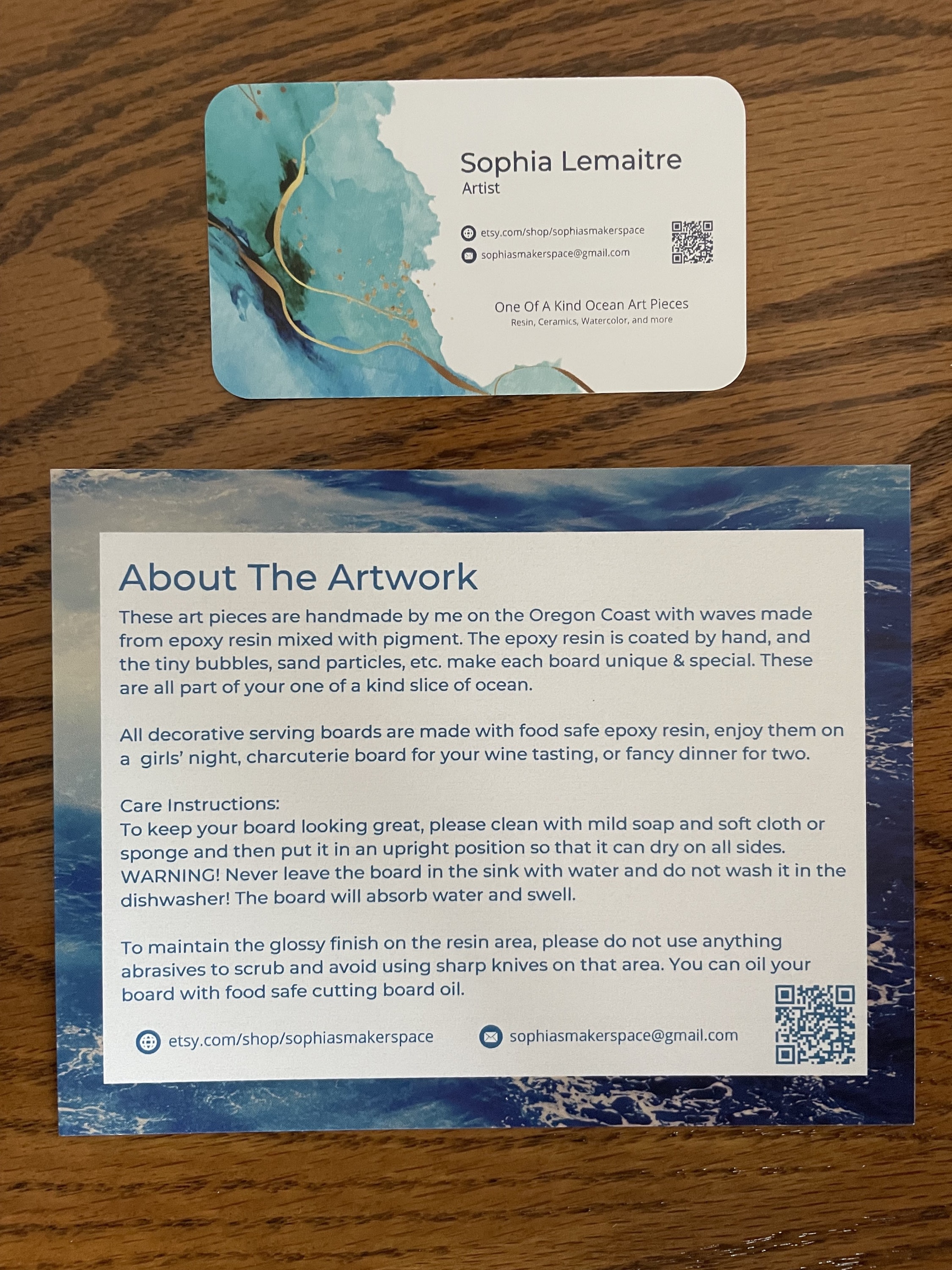 I make all of my one of a kind art pieces here in Yachats. Inspired by winter storms, clear sunny days, and my favorite spots to watch the waves crash: Yachats Ocean Road, Cooks Chasm, Spouting Horn, Tillicum.